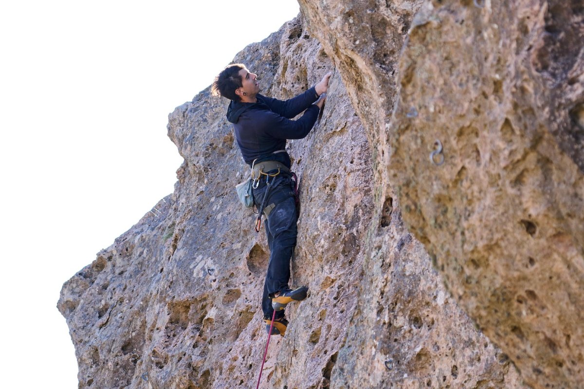 Gonzalo detalla que este deporte en el Cañadón es peculiar porque “es muy característica la roca, por los agujeros chicos que hay, es un estilo de escalada particular”.