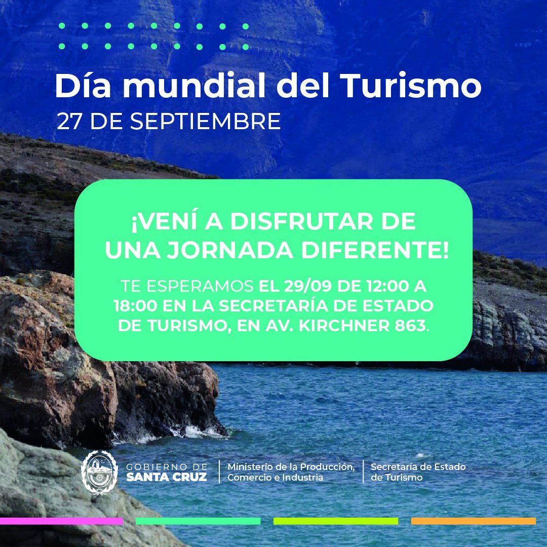 La Secretaría de Estado de Turismo, dependiente del Ministerio de la Producción, Comercio e Industria, invita a toda la comunidad a participar de una jornada especial en el marco de la conmemoración del Día Internacional del Turismo, que se celebra cada 27 de septiembre a nivel mundial.