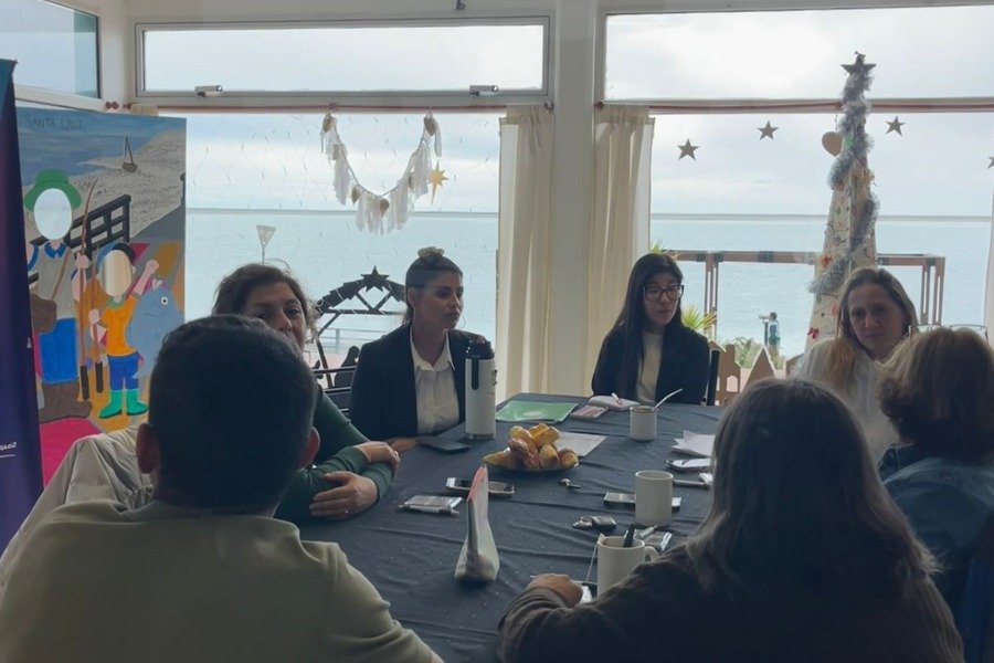La agenda continuó en Puerto Santa Cruz, donde Zavalía fue recibida por la directora de Turismo local, Macarena Vilches, y prestadores privados, con quienes se abordaron temas relacionados a la temporada turística, la regularización de servicios y el fortalecimiento de la oferta local.