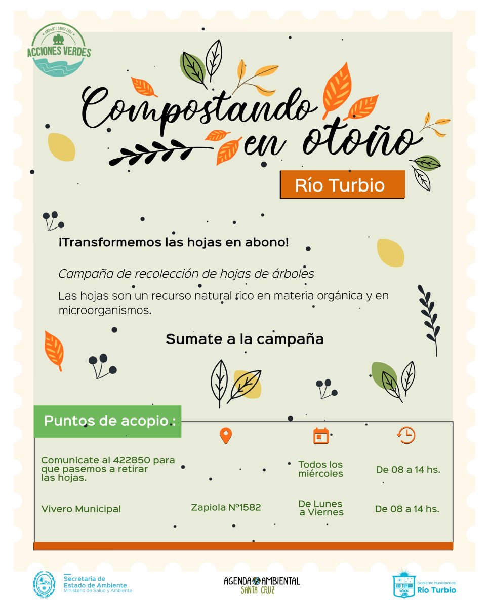 Cada localidad cuenta con puntos de acopio donde se pueden acercar las hojas. Esta información se encuentra disponible en el espacio de Acciones Verdes, en la página del Gobierno de Santa Cruz https://www.santacruz.gob.ar/accionesverdes.