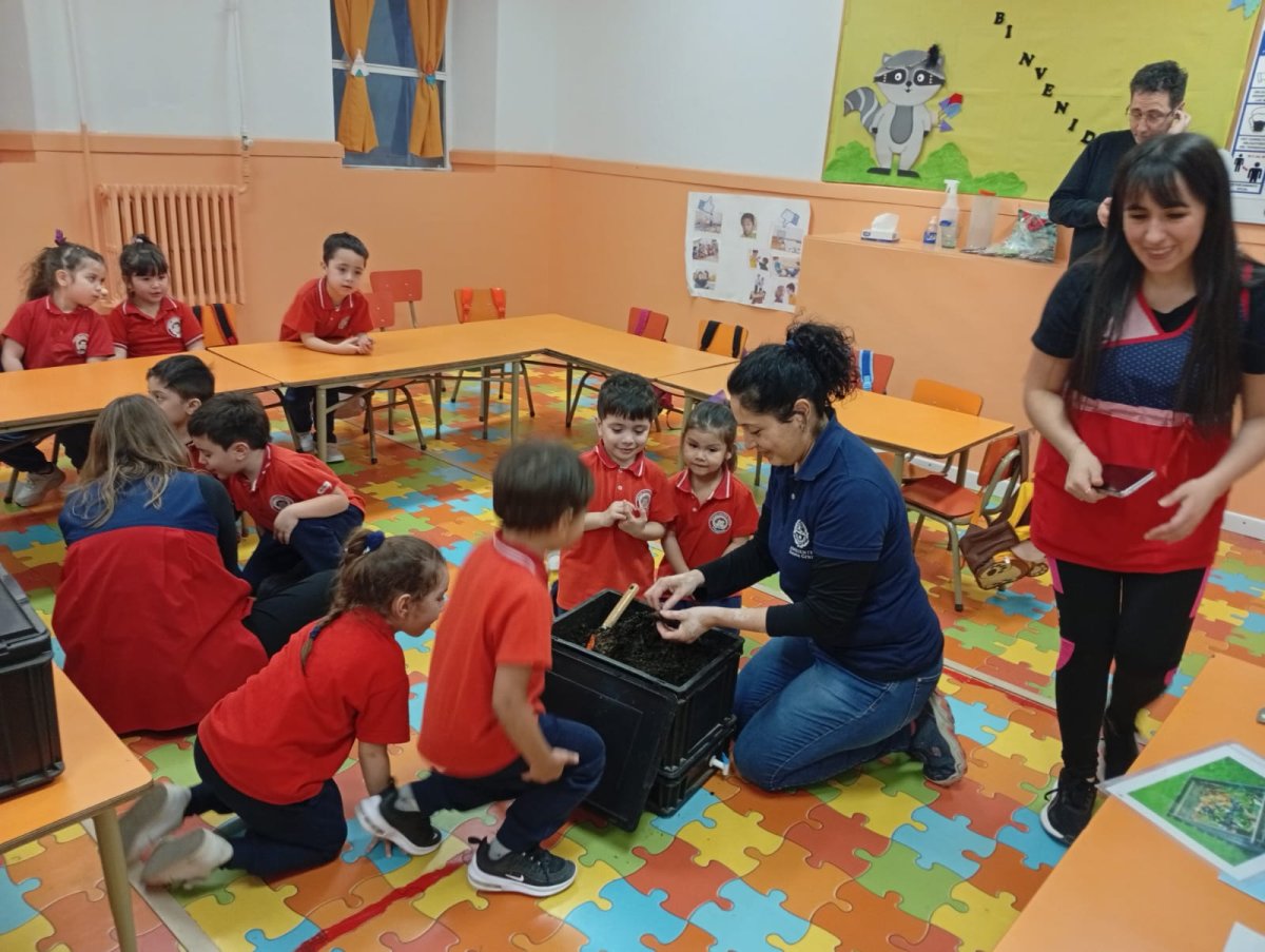 Posteriormente, se les presentó de manera lúdica el fascinante proceso del compostaje, explicando cómo los restos de comida y otros desechos orgánicos se transforman en un abono natural. Se destacó la importancia del compost para nutrir la tierra y ayudar a que las plantas crezcan sanas y fuertes.