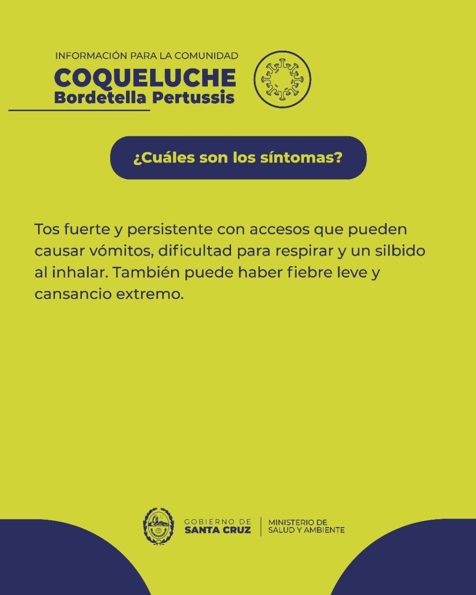 El Ministerio de Salud y Ambiente de Santa Cruz confirmó dos casos de coqueluche -también conocida como tos convulsa- en la ciudad de Río Gallegos, y activó una alerta epidemiológica provincial para reforzar las acciones de vigilancia y prevención. Así lo informó la referente del Plan de Inmunización, Estefanía Stricker, en diálogo con LU14 Radio Provincia de Santa Cruz.
