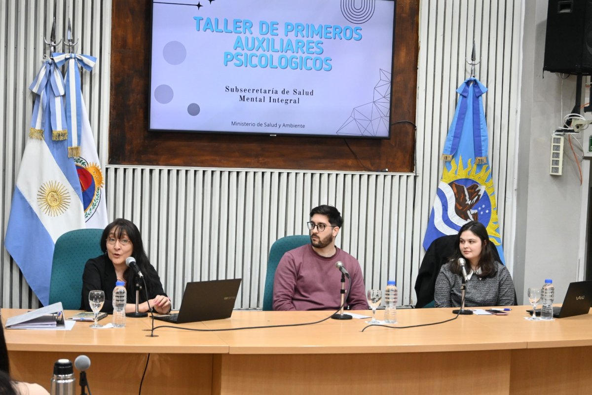 La capacitación fue impartida por Claudia González, por la Cámara de Diputados, Mariano Rodas, subsecretario de Salud Mental Integral y Lucrecia Molina, directora Provincial de Abordaje de Conductas de Riesgo Suicida y Autolesivas por el Ministerio de Salud y Ambiente.