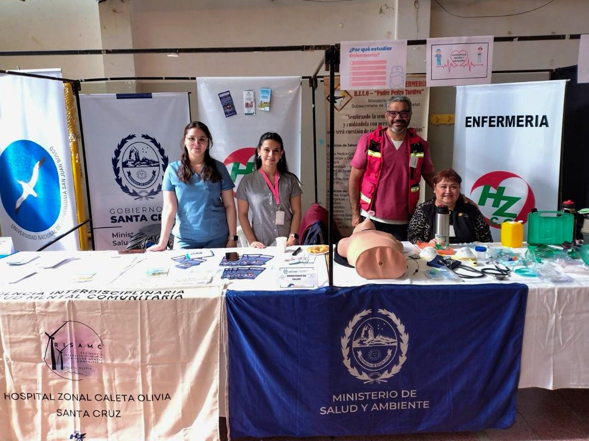En la Expo Carreras estuvieron presentes los profesionales de los equipos de salud, que se encuentran cursando su residencia en las localidades de Río Gallegos y Caleta Olivia, quienes brindaron información a los estudiantes sobre el sistema de residencias, las características de cada especialidad, y las particularidades de esta formación académica profesional.