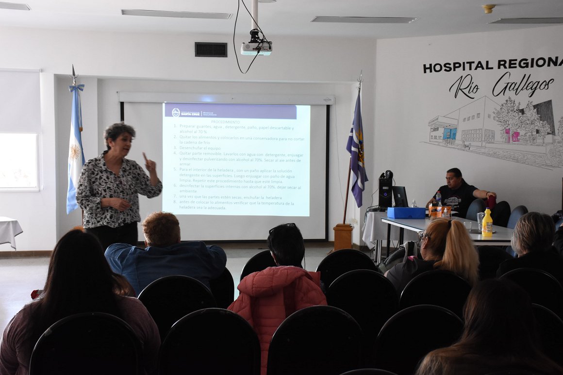 La cartera sanitaria brindó un curso intensivo denominado Manipulador de Alimentos, cumpliendo las normas vigentes del Código Alimentario Argentino. La capacitación, dictada por los expertos Gladys Amelia Vera y Miguel Zapata, se realizó en el auditorio del Hospital Regional Río Gallegos y estuvo dirigida principalmente a personal de hogares de niños y ancianos.