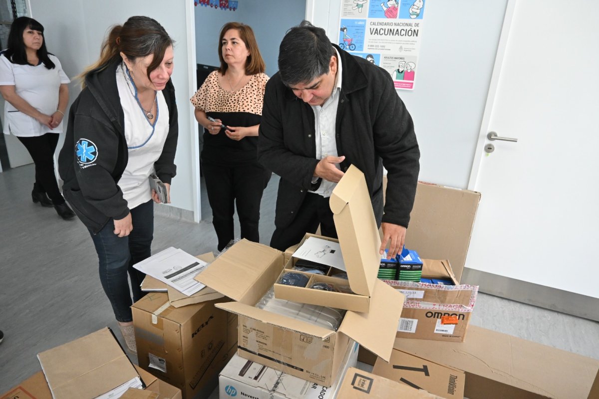 Seguidamente, se entregó una gran cantidad de elementos destinados a fortalecer el primer nivel de atención, que consisten en mobiliarios, insumos médicos, tensiómetros, monitor fetal, espirómetro, balanzas, computadoras de escritorio, notebooks, impresoras multifunción y láser, heladeras y freezers, sumado a los equipos de ecografía que contaron con instancias formativas de los médicos generalistas para su utilización y realizad los diagnósticos por ultrasonido.