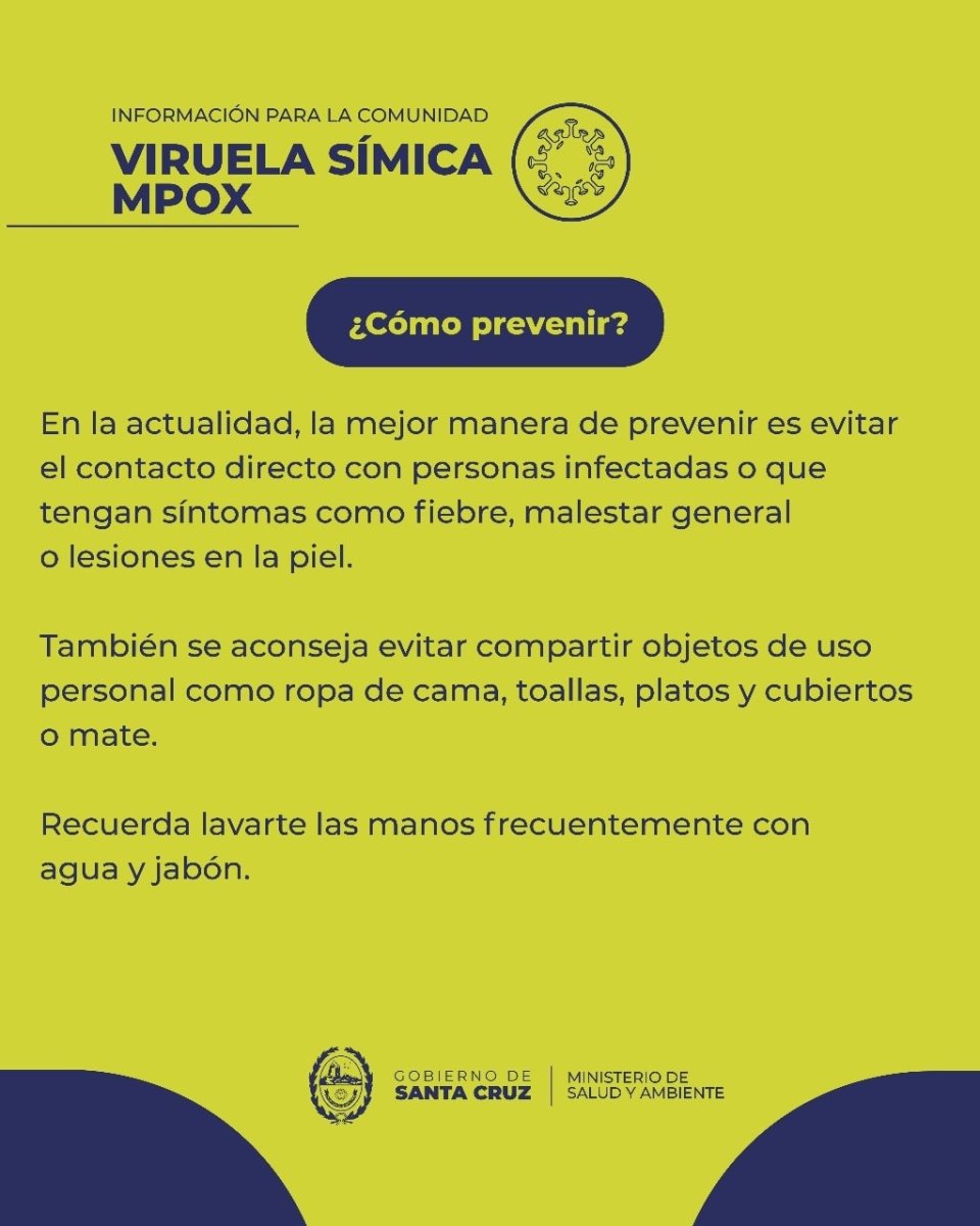 En la actualidad, la mejor manera de prevenir es evitar el contacto directo con personas infectadas o que tengan síntomas como fiebre, malestar general o lesiones en la piel. También se aconseja evitar compartir objetos de uso personal como ropa de cama, toallas, platos y cubiertos o mate. Es muy importante realizar el lavado de las manos frecuentemente con agua y jabón.