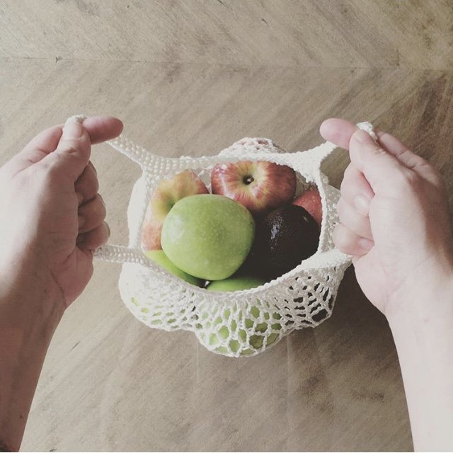 Las bolsas que ofrecen son rejillas tejidas a dos agujas en hilos de algodón; esponjas tejidas a crochet con yute; los trapos repasadores tejidos en algodón en un punto más reducido para su mejor absorción; y nuestra estrella es la bolsa net, que es una bolsa tejida a crochet en macramé que sirve para transportar objetos y/o las compras del supermercado.