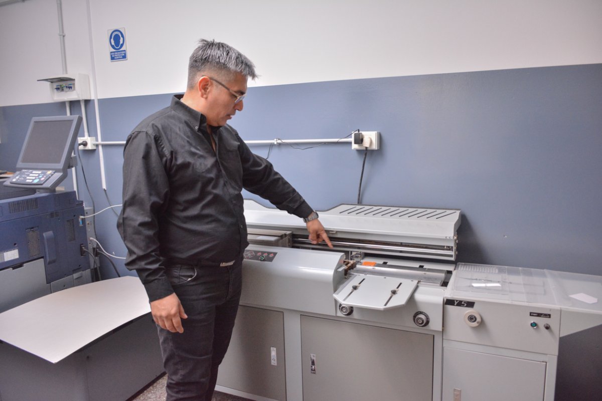 -Nosotros estamos con impresión offset, que ya venía desde hace un tiempo. También hace unos pocos años, hemos adquirido las impresoras digitales de alta producción, que están trabajando todo el día. Están haciendo por año -más o menos- un millón de impresiones digitales. Ahora, está la adquisición y la puesta en funcionamiento de la grabadora láser. Tenemos también algunos trabajos en sublimación, serigrafía y encuadernación artesanal. Hoy le prestamos servicios a todos los entes provinciales.