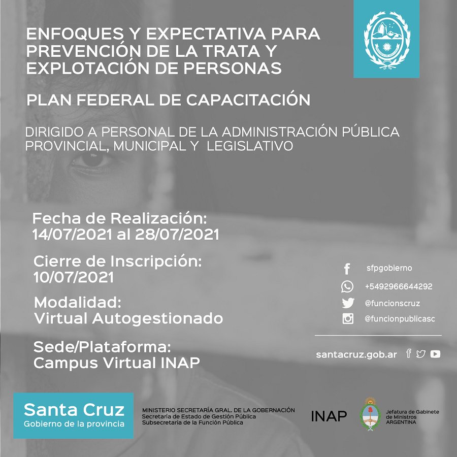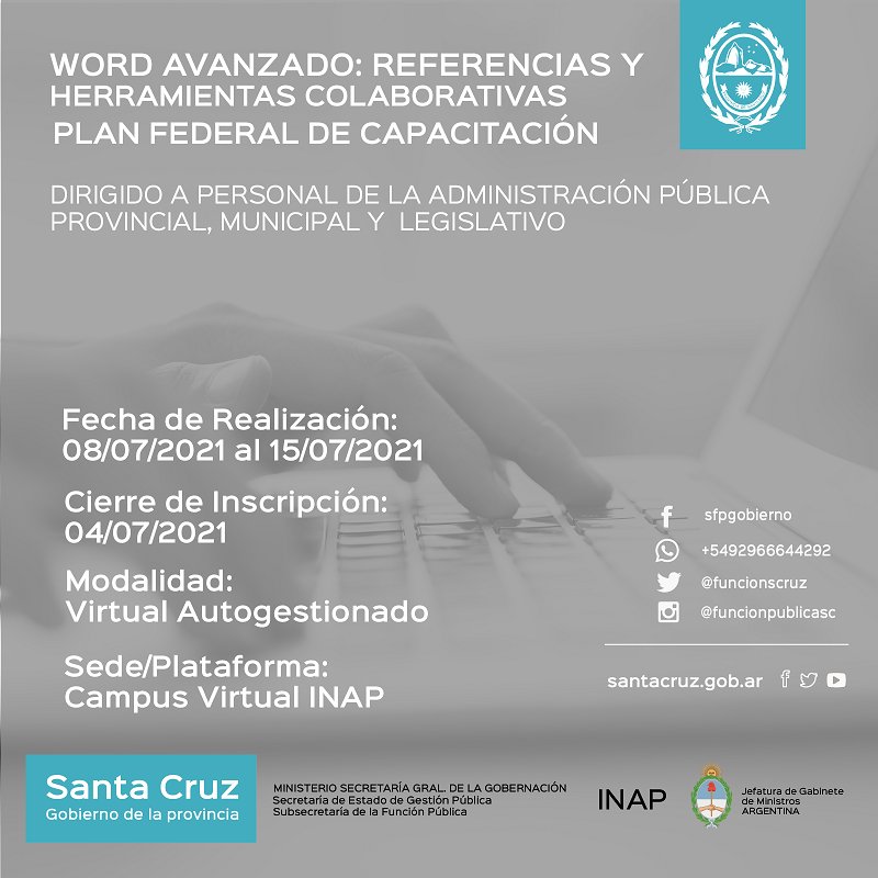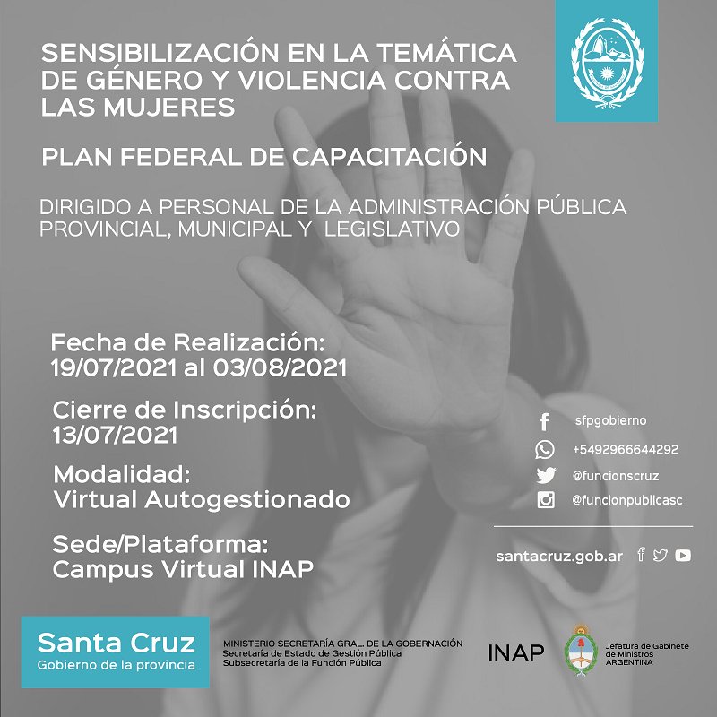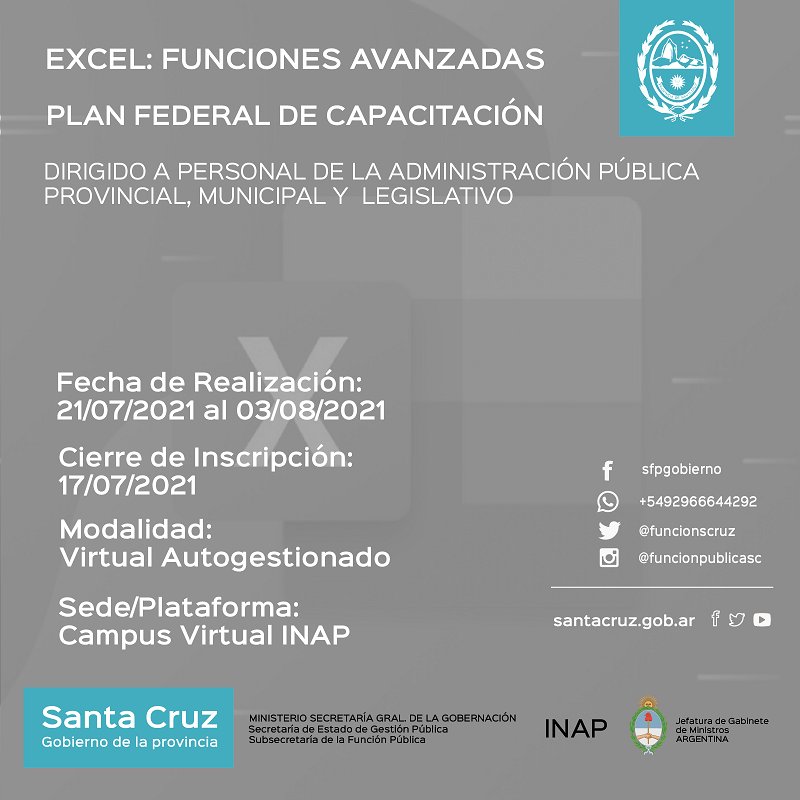El Gobierno de Santa Cruz, a través de la Subsecretaría de la Función Pública del Ministerio Secretaría General de la Gobernación, brinda una serie de nuevas alternativas para que los trabajadores y trabajadoras de la provincia y de todos los Municipios y Comisiones de Fomento, se capaciten.