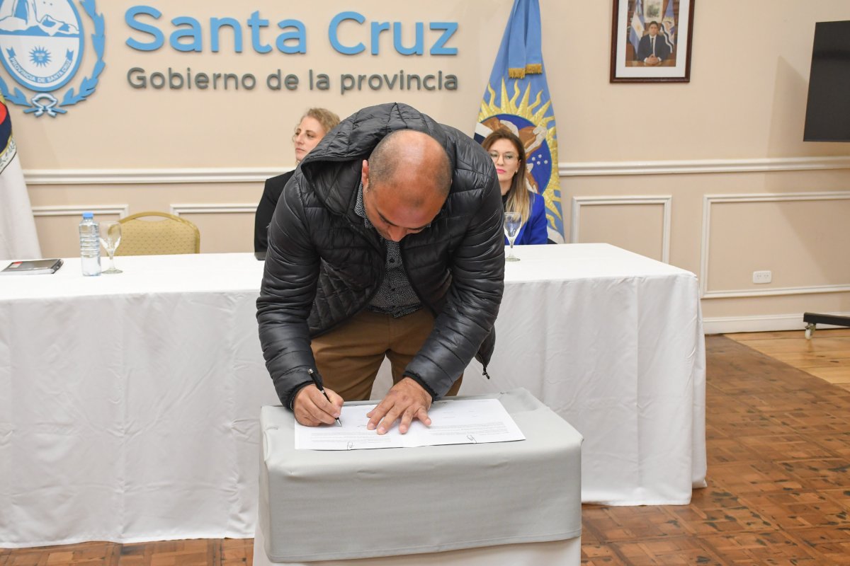 Del acto que, se concretó esta mañana en Sala Gregores de Casa de Gobierno, fueron parte, la ministra Secretaria General de la Gobernación, Cecilia María Borselli, el presidente del IDUV, Cristian Gabriel Mansilla, y la Coordinadora Provincial del Sistema de Identificación Nacional Tributario Nacional y Social (SINTyS), Lorena Díaz Cano.