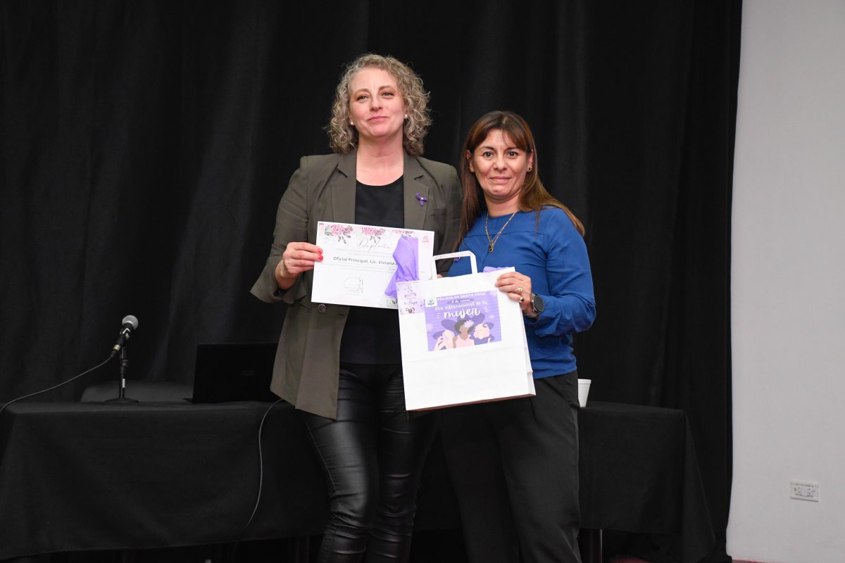 Esta mañana en el Centro Cultural Santa Cruz, organizado por la Policía de la Provincia de Santa Cruz se desarrolló el cierre de la jornada “Voces de Mujer: Fuerza, Identidad y Compromiso”, donde se valoró el rol de la mujer dentro de la institución. Hubo reconocimientos a mujeres destacadas.