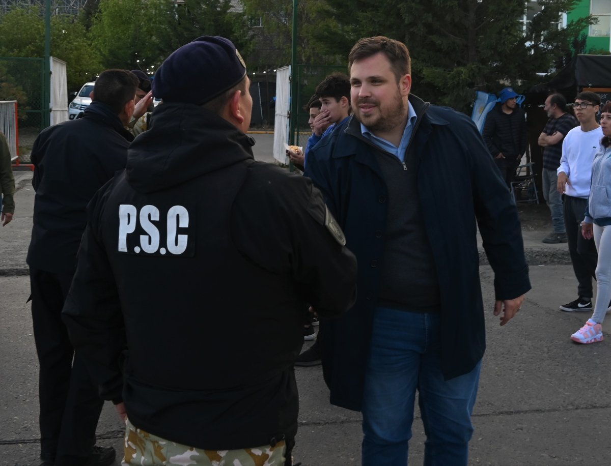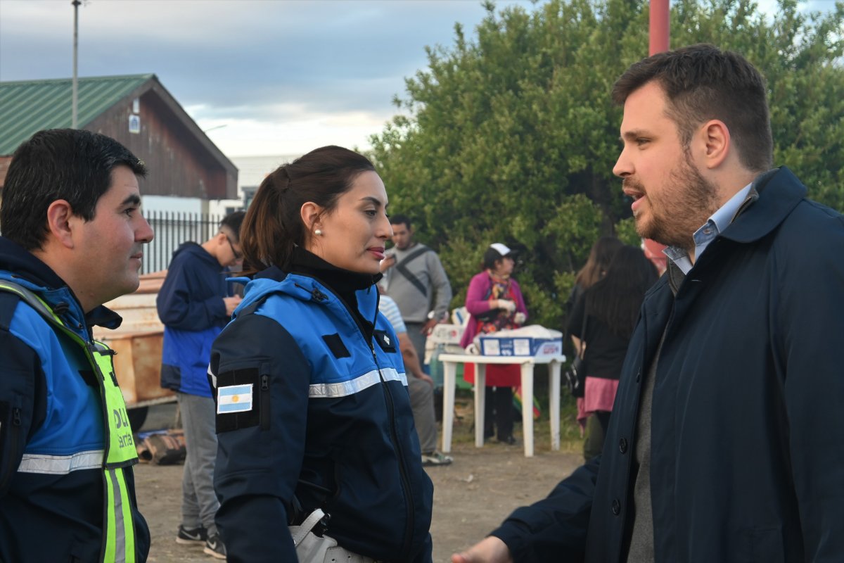 El ministro de Seguridad, Luca Pratti junto a la secretaria de Coordinación Ejecutiva Municipal, Claudia Picuntureo, la Subsecretaria de Participación Ciudadana, Victoria Aguilar y el subjefe de Policía, Comisario General Juan Carlos Guanes recorrieron el dispositivo preventivo, en el marco del 137° Aniversario de Río Gallegos.