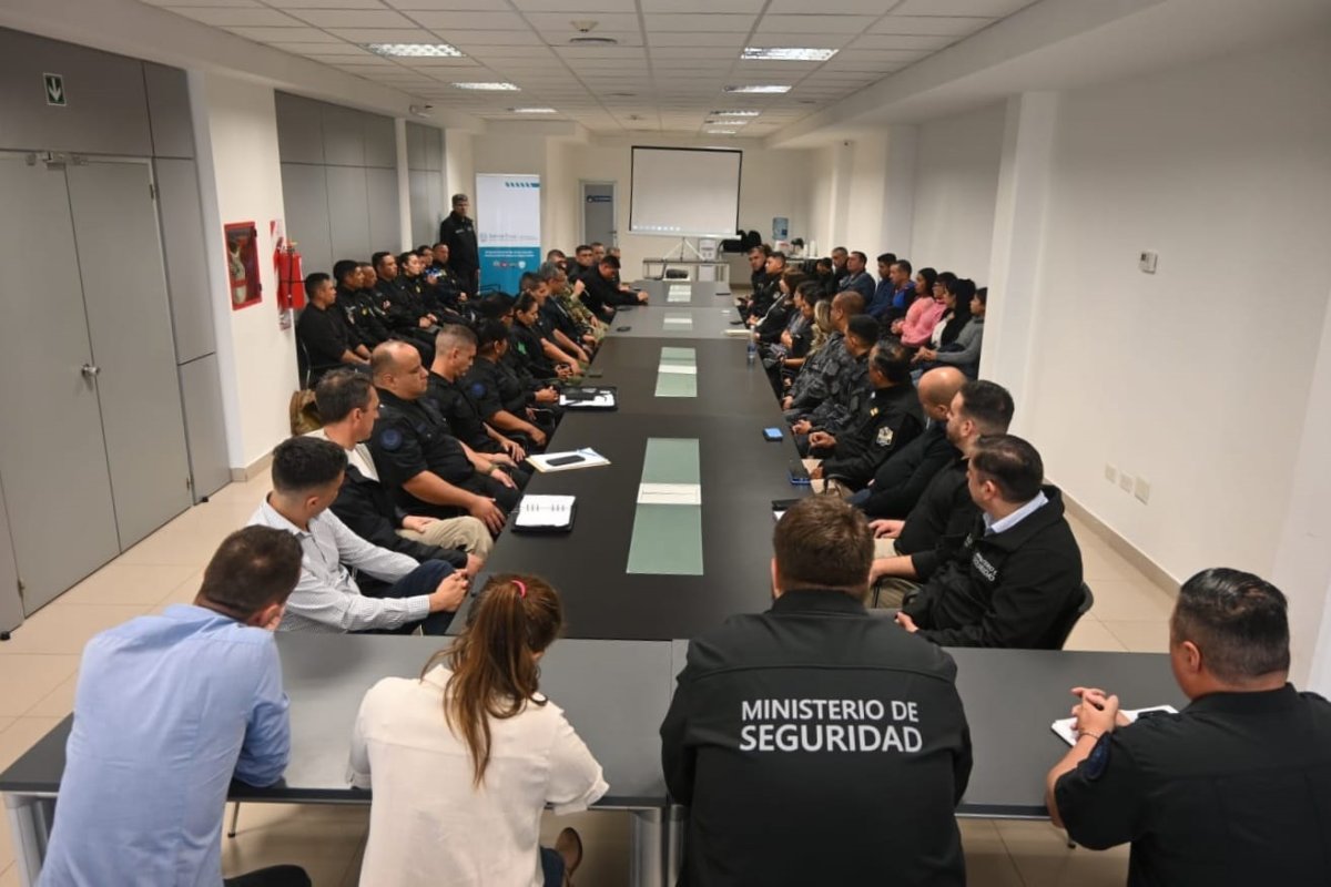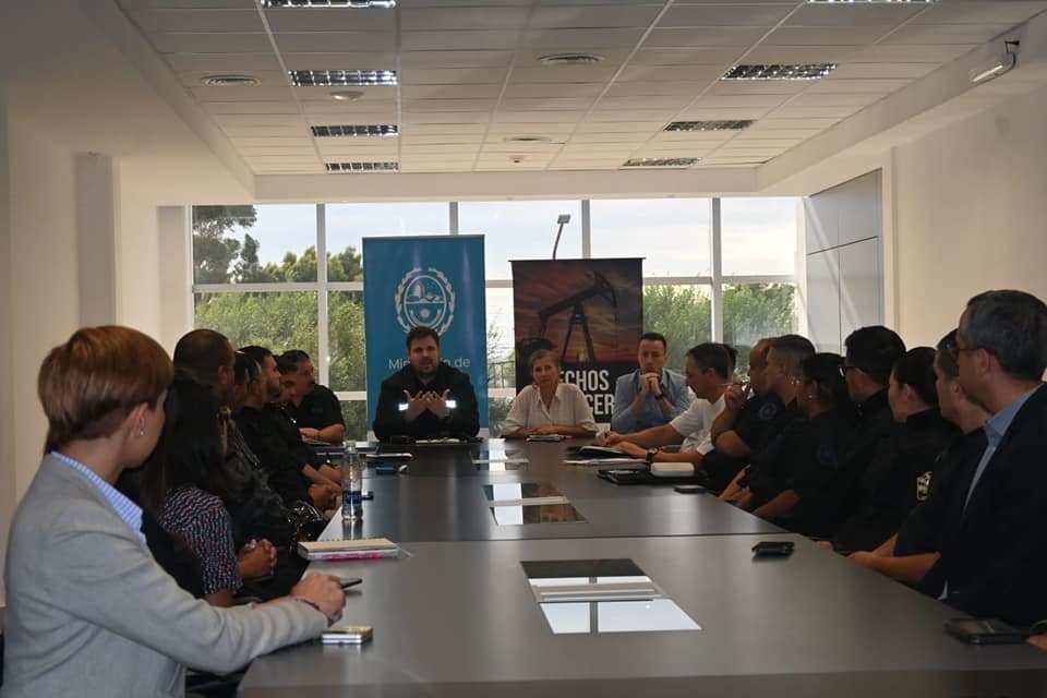 El ministro de Seguridad, Luca Pratti, encabezó una mesa de trabajo junto a la subsecretaria de Formación y Carrera, Belén Mora, el director de Formación y Entrenamiento, Daniel Palazzo del Ministerio de Seguridad de la Nación Argentina, el jefe del Cuerpo de Prevención Barrial de la Policía Federal Argentina, Crio. Adesso Cámpora e instructores de la Policía de Santa Cruz que se encuentran desarrollando el Curso de Formación, Entrenamiento y Doctrina del nuevo Cuerpo Policial.
