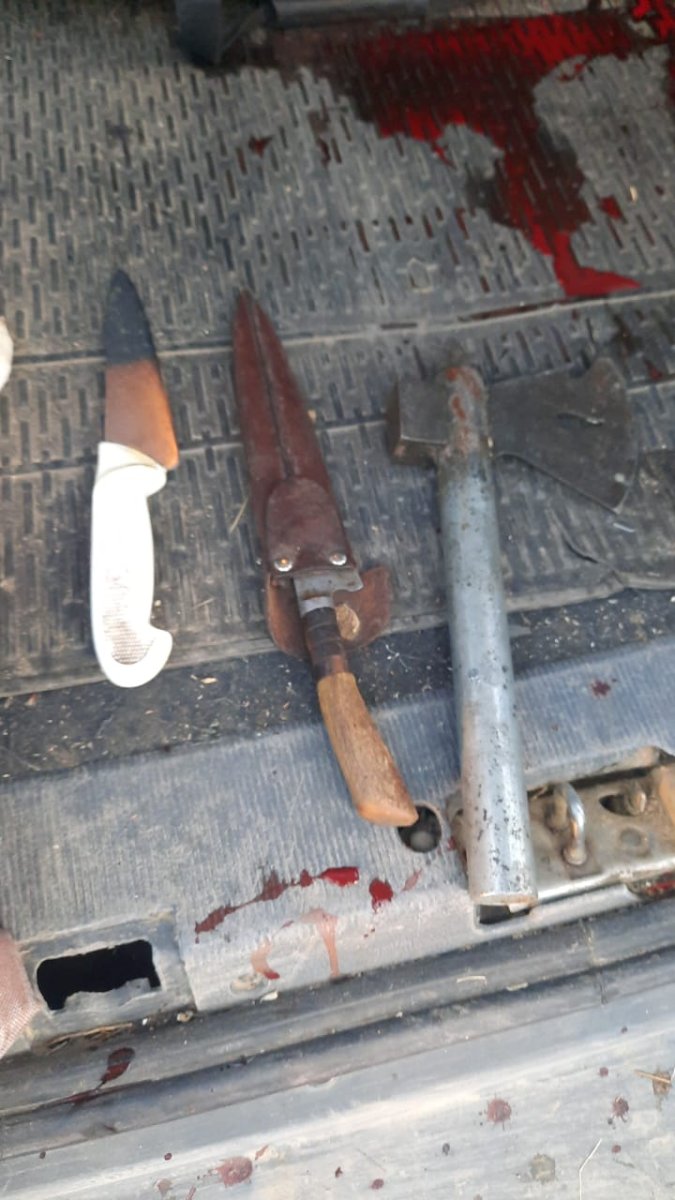 Siguiendo instrucciones judiciales, se procedió a la requisa urgente del automóvil, encontrando en su interior cinco ovinos recientemente faenados, con señales en las orejas correspondientes al establecimiento ganadero “Floradora”, ubicado a 40 km de Jaramillo. También se secuestraron dos armas de fuego largas tipo rifle con municiones y vainas servidas, tres armas blancas y una pistola 9 mm marca Bersa, oculta debajo del asiento del conductor.