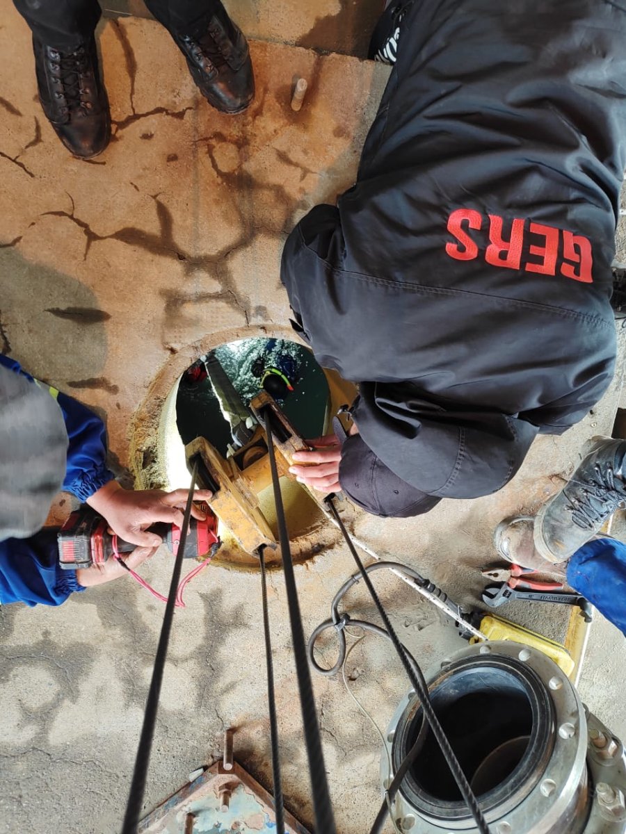 El operativo requirió una intervención precisa en una zona de difícil acceso, entre 10 y 13 metros de profundidad, en la cámara de captación de agua. Para la tarea, el equipo de buzos del GERS, que cuenta con formación especializada en rescate subacuático, utilizó una combinación de técnicas avanzadas, incluyendo el uso de trípode y polipastos (sistema de polea) para descender al buzo, y, malacate mecánico, cadena, grillete, y cintas, para el izado hasta la superficie de la bomba de 3 metros de largo y 1000 kilos de peso