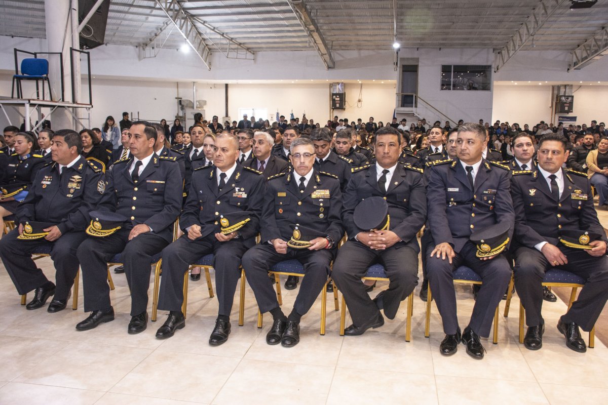 La ceremonia contó con la destacada presencia de altas autoridades del Poder Ejecutivo Provincial, incluyendo a la ministra de Gobierno, María Belén Elmiger; la ministra Secretaría General de la Gobernación, Soledad Boggio; el ministro de Trabajo, Empleo y Seguridad Social, Ezequiel Verbes; el jefe de Policía de la Provincia, comisario general Diego Martín Agüero, y el subjefe, comisario general Luis Bordón. Estuvieron presentes también la directora del Departamento Escuela de Cadetes, comisario mayor María Valeria Herrera, y la subdirectora, comisario inspector Silvana Vanesa Almendras, junto a otros ministros, superintendentes, funcionarios del gobierno, comandantes de Fuerzas Armadas y de Seguridad, y las familias de los egresados.