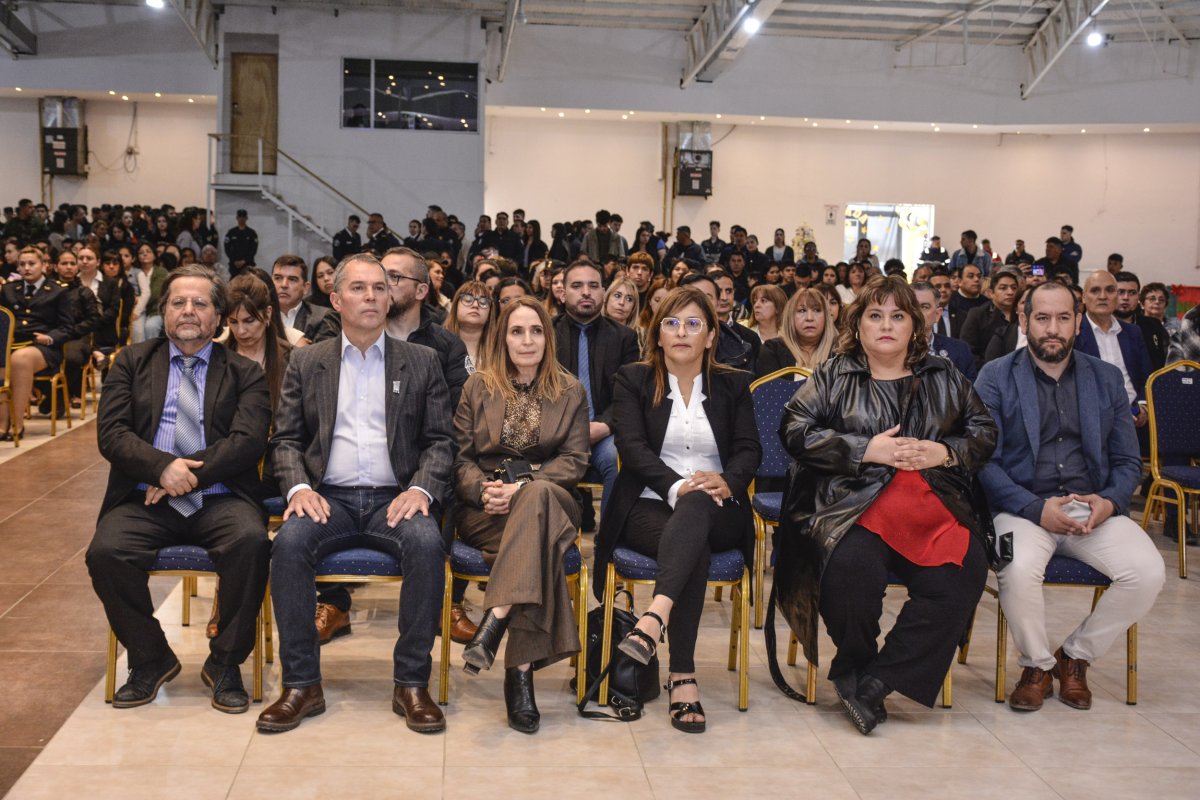 El evento contó con la presencia del Ejecutivo Provincial, representado por el jefe de Gabinete, Daniel Álvarez; las y los ministros Soledad Boggio (Gobernación), Nadia Ricci (Producción, Comercio e Industria), Iris Rasgido (Educación), Pedro Prodromos (Seguridad); el jefe de Policía, comisario general Diego Agüero; el subjefe de Policía, comisario general Luis Bordón; el director de la División Escuela de Suboficiales y Agentes, comisario Mayor Rodrigo Galindo; entre otras autoridades.