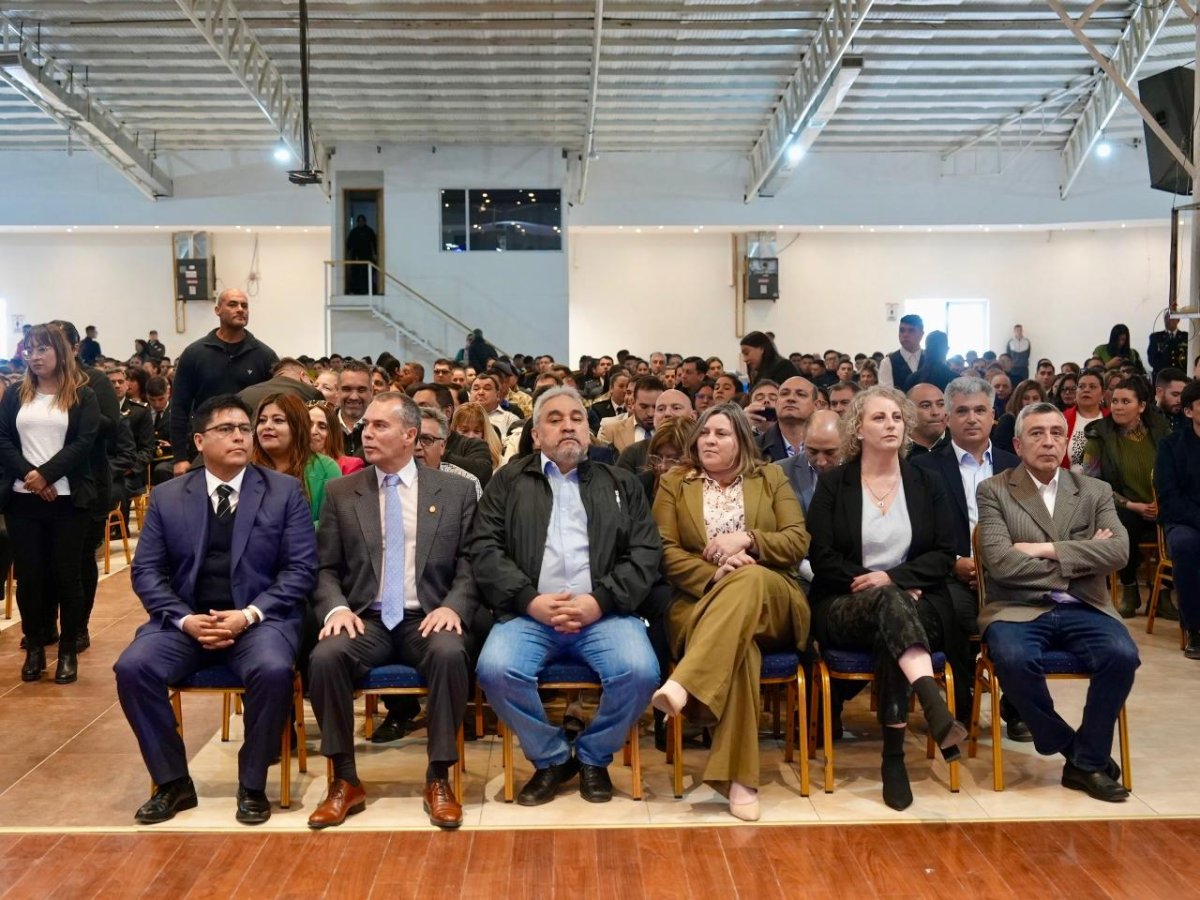El gobernador dedicó un tramo de su discurso a respaldar la labor del ministro de Seguridad. “Antes los ministros se quedaban sentados en un escritorio dando órdenes por teléfono. Hoy tienen un hombre de carne y hueso que acompaña allanamientos, controles y operativos”, destacó.