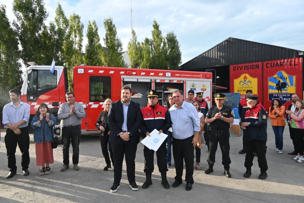 Así lo afirmó el ministro de Seguridad de la Provincia, Luca Pratti, quien destacó la política de desarrollo y fortalecimiento de la seguridad pública que lleva adelante el Gobierno de Santa Cruz. El Cuartel de Bomberos de la Villa Turística recibió una Autobomba O KM de 4.000 litros.
