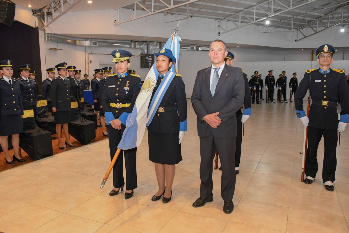 Esta mañana, en el Salón Bet El del barrio San Benito de Río Gallegos, se desarrolló la ceremonia con la presencia del jefe de Gabinete de Ministros, José Daniel Álvarez, quien estuvo acompañado por el ministro de Gobierno, Nicolás Brizuela; de Seguridad, Javier Prodromos; de Desarrollo Social, Igualdad e Integración, Luisa Cárdenas; el jefe de la Policía de Santa Cruz, Comisario General, Diego Agüero y subjefe, Comisario General, Luis Bordón; la directora del Departamento Escuela de Policía, Comisario Mayor, Beatriz Galeano; con la asistencia además de superintendentes, concejales, autoridades eclesiásticas e invitados especiales, y familiares.