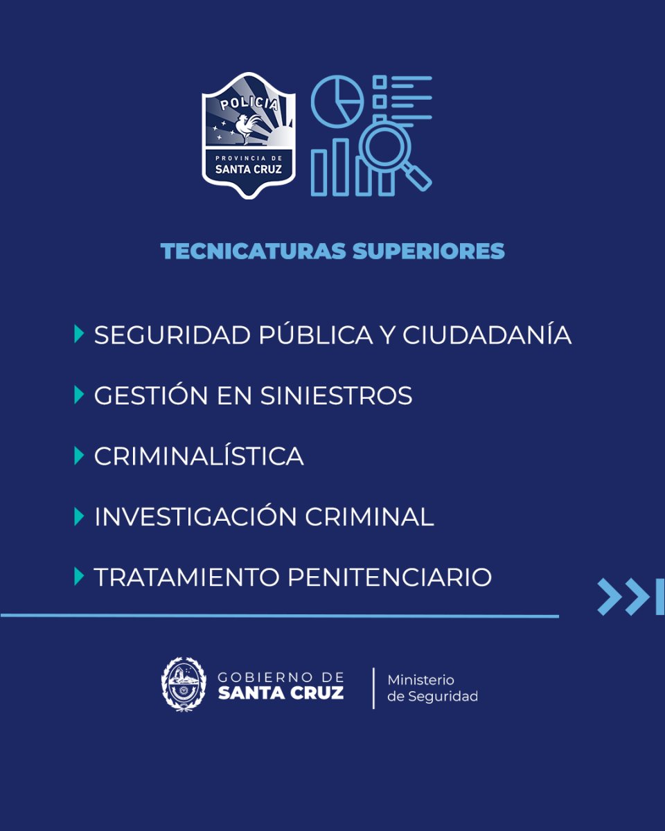 En tal sentido se invita a los y las jóvenes interesados en ingresar como cadetes de primer año a postularse a las siguientes Tecnicaturas Superiores: