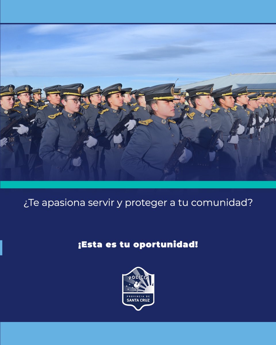 La Policía de la Provincia de Santa Cruz anuncia la apertura de inscripciones para el ciclo lectivo 2025 de la Escuela de Cadetes.