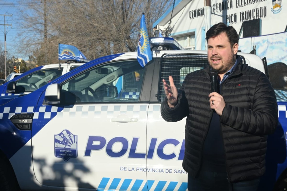 Igualmente, el titular de la Cartera precisó: “Estas herramientas que estamos entregando es un motor, un empuje y una ayuda a nuestros policías que día y noche se la juegan para que Pico Truncado esté cada vez más segura. Esto es un compromiso por parte del Ministerio y la Policía de poder brindarles herramientas para que ese uniforme azul se vea reflejado también con equipamiento de última generación para poder cuidar de todos los vecinos y vecinas”.