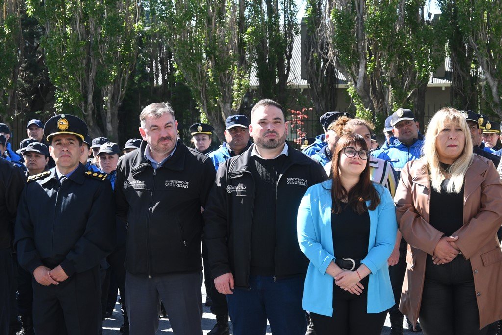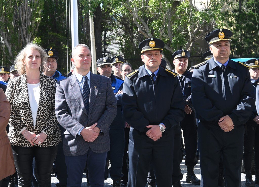 El acto estuvo encabezado por el Jefe de Gabinete de ministros José Daniel Álvarez, la ministra Secretaria General de la Gobernación, Cecilia Borselli, y el jefe y subjefe de la Policía Provincial, Crio. Gral. Diego Agüero y Crio. Gral. Luis Bordón. También estuvieron presentes autoridades del ministerio de Seguridad, superintendentes de la institución, Directores Generales, Jefes de Departamentos y de Divisiones, personal retirado, y Veteranos de Malvinas, entre otros.
