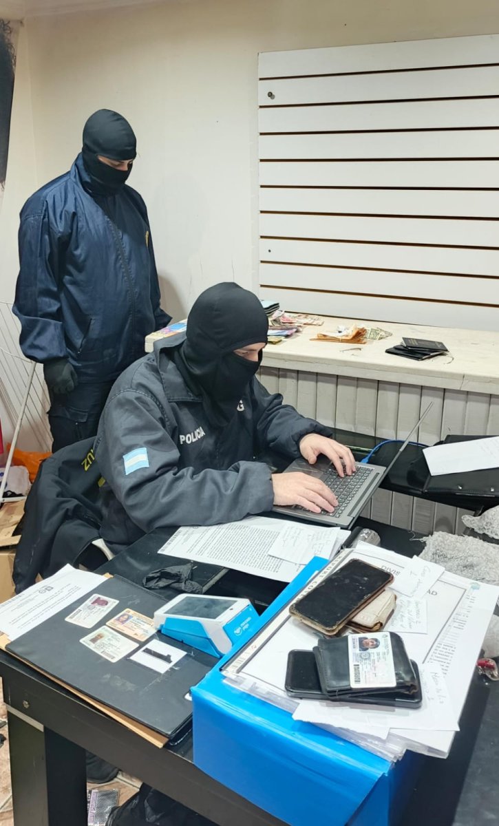 Es por eso que, en horas de la tarde de ayer martes 08 de octubre, se realizaron 16 allanamientos en simultáneos, en distintos barrios, de Río Gallegos; procediendo al secuestro de más de 1.000 dosis de clorhidrato de cocaína; lo que representaría, en el mercado local, un valor de $40.000.000 (cuarenta millones de pesos argentinos); asimismo se incautó la suma de $3.800.000 pesos argentinos; u$s 430 (dólares); 40.260 pesos chilenos; balanzas electrónicas de precisión; teléfonos celulares; libretas con anotaciones de interés, armas de fuego y elementos cortantes, entre otras cosas.
