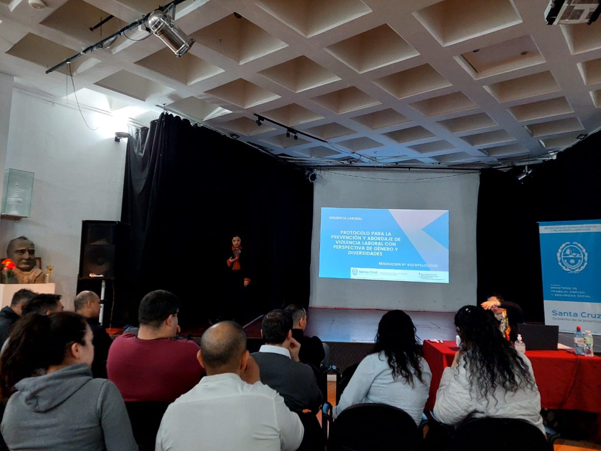 En este sentido, el Ministerio de Trabajo, Empleo y Seguridad Social brindó una jornada de formación a los trabajadores y trabajadoras del Casino Club S.A. de Río Gallegos, quienes fueron capacitados en el marco del “Protocolo de Prevención y Abordaje de Violencia Laboral con Perspectiva de Género y Diversidades”, aprobado por Resolución Nº412/MTEySS/2021.